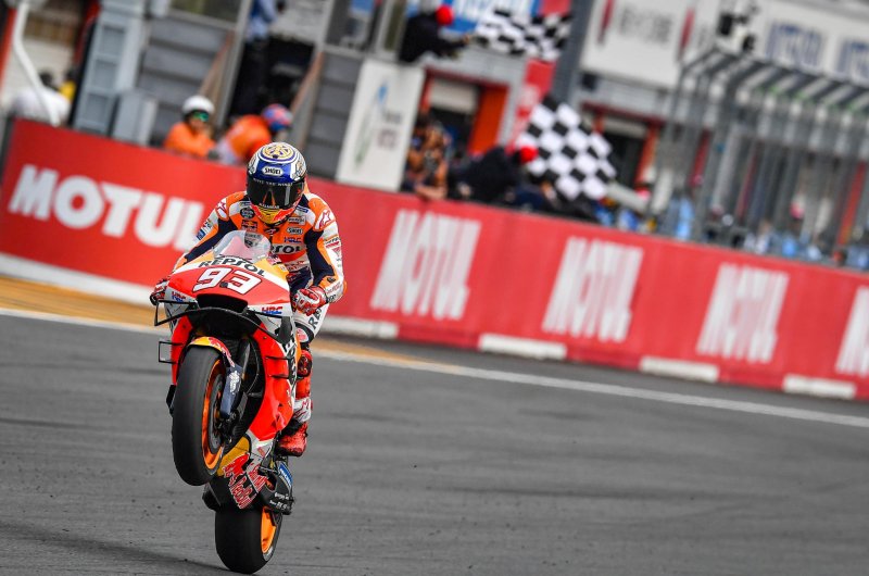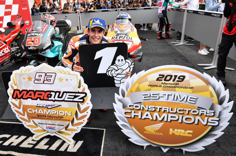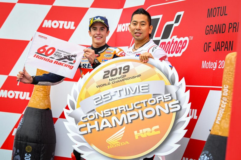 Egy első körös oda-vissza előzést leszámítva kényelmes sikert aratott Motegiben a nyolcszoros világbajnok, aminek révén már a gyártók között is behúzta a vb-címet a HRC.