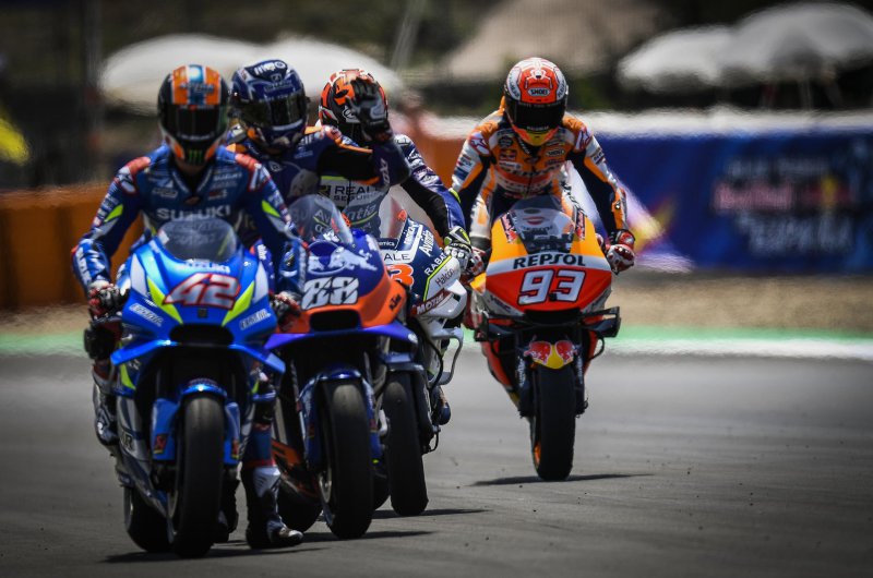 Már a rajtnál az élre állt, onnan pedig vissza sem nézett a Repsol Honda címvédője, aki idei második győzelmével ismét átvette a vezetést a tabellán. Alex Rins a futamon és összetettben is a második, Maverick Vinales maga mögött tartotta Andrea Doviziosót az utolsó dobogós helyért.