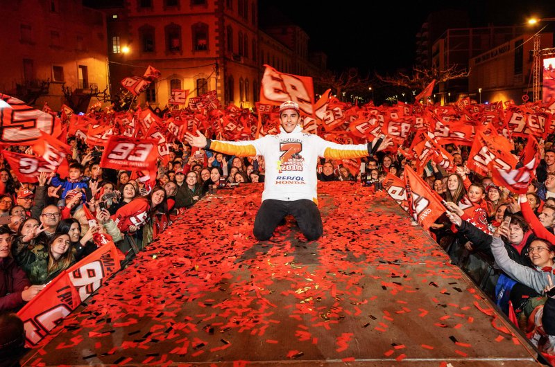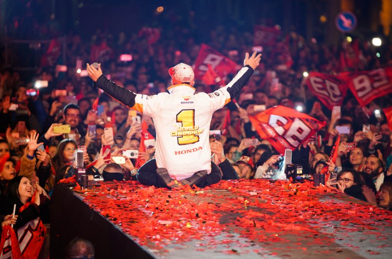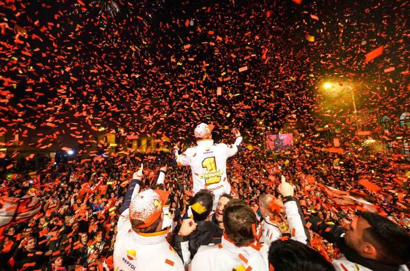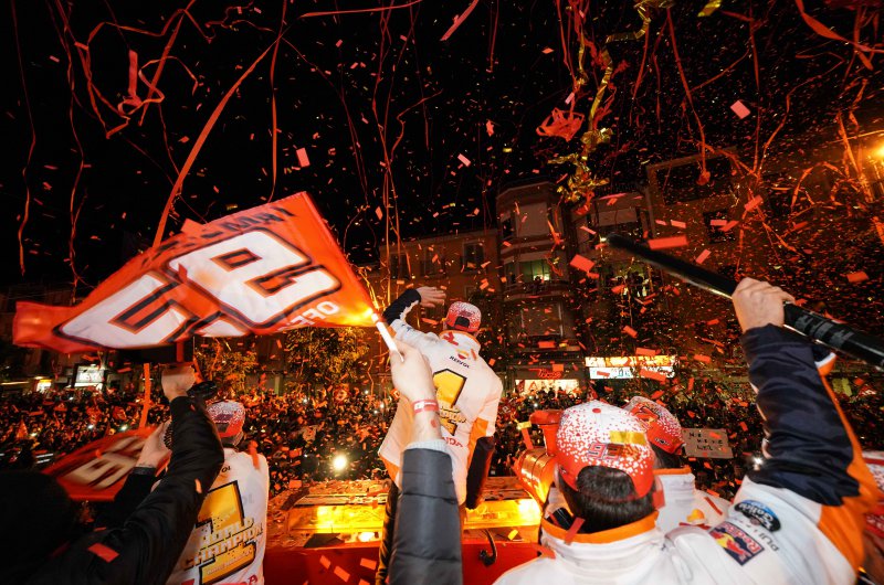 Már-már hagyománynak számít Cerverában, hogy a helyi hős, Marc Marquez tiszteletére utcai parádét szerveznek az év végén, a spanyol motoros immár hetedik világbajnoki elsőségét ünnepelhette a Barcelona közelében fekvő kisváros.
