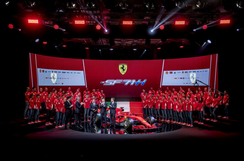 Látványos rendezvény keretei között mutatta be új autóját, az SF71H névre keresztelt 2018-as modellt a Ferrari, amelyre a tavalyinál is több piros festék került – többek között a haló is ilyen színt kapott.