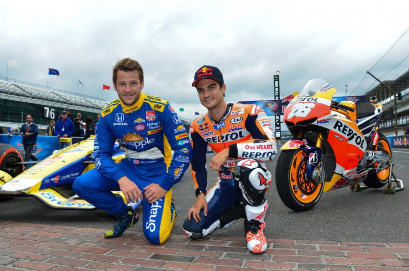 A MotoGP szezonjának következő állomása az autóversenyzés szentélye, Indianapolis. Nem is értjük, miért nem jutott eddig senkinek sem eszébe, hogy egy 1000-es motort eresszen össze egy IndyCarral. Dani Pedrosa Marco Andretti ellen.