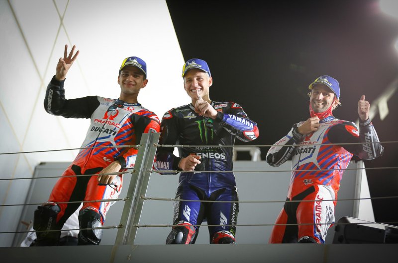 Hiába vezetett szinte végig a pole-ból induló Jorge Martin, ismét Yamaha-győzelem született Katarban, csak ezúttal a gyári csapat új szerzeménye révén. Két pramacos a dobogón, Miller és Mir ütközött.