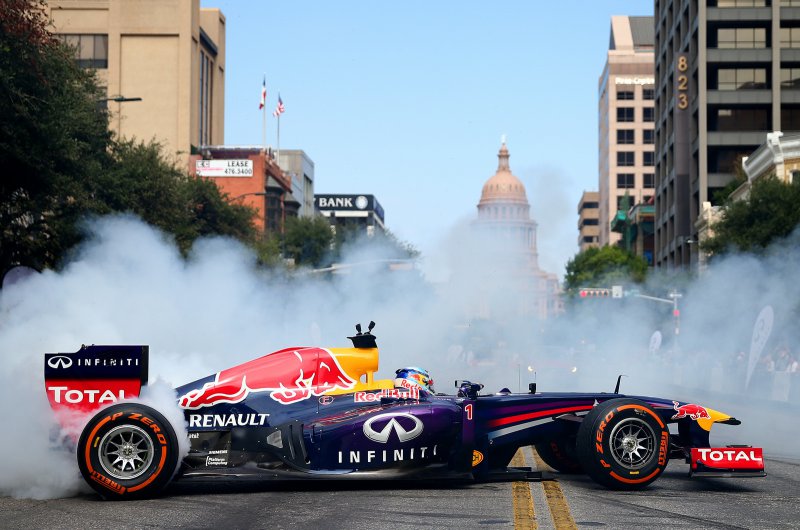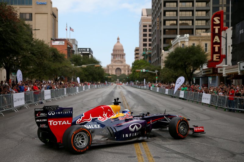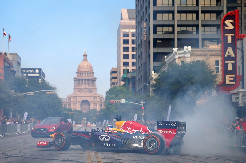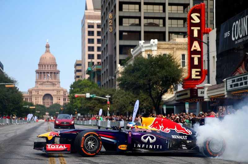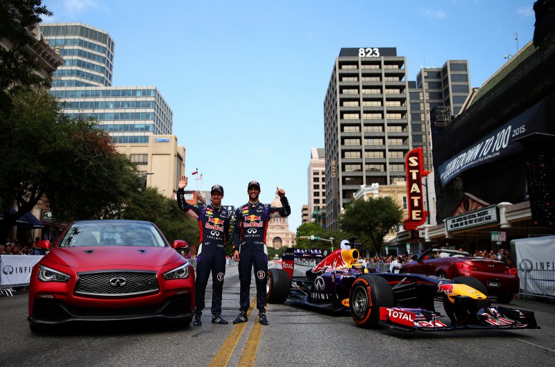 A Red Bull versenyzői, Sebastian Vettel és Daniel Ricciardo az USA Nagydíj előtt bemutatóztak a texasi rajongóknak...