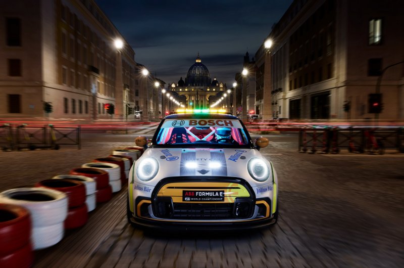 Az ABB FIA Formula E idei versenyszezonjának második felvonásán, az április 10-11. közötti hétvégén megrendezett római fordulón a MINI tisztán elektromos meghajtású biztonsági autója is reflektorfénybe gurult, a JCW-ihlette MINI Electric Pacesetter ugyanis itt ünnepelte világpremierjét.