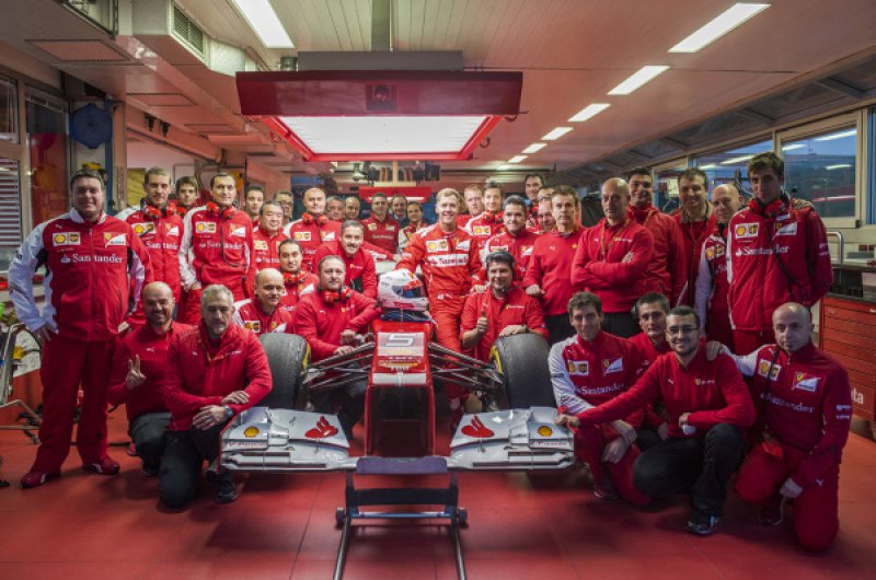 A négyszeres bajnok új csapatánál töltötte a hétvégét, ahol a személyzettel való ismerkedés mellett egy 2012-es Ferrarit is kipróbálhatott Fioranóban.