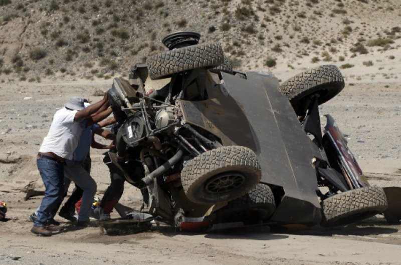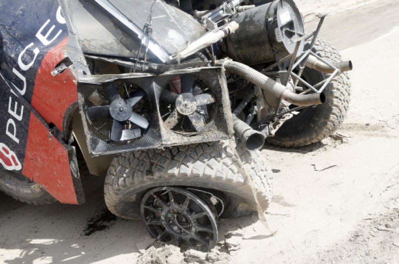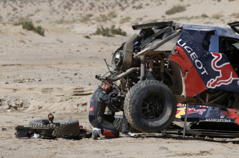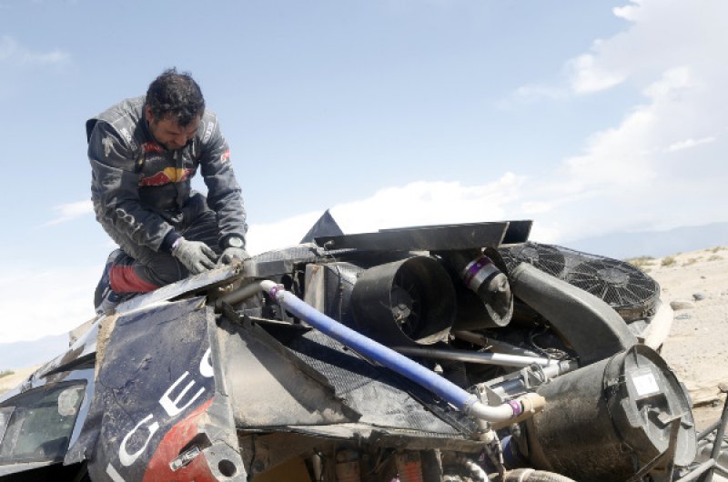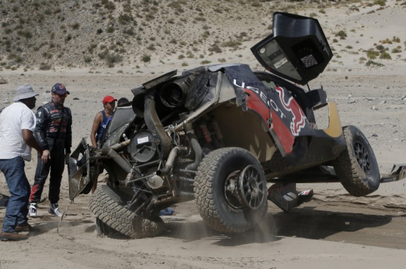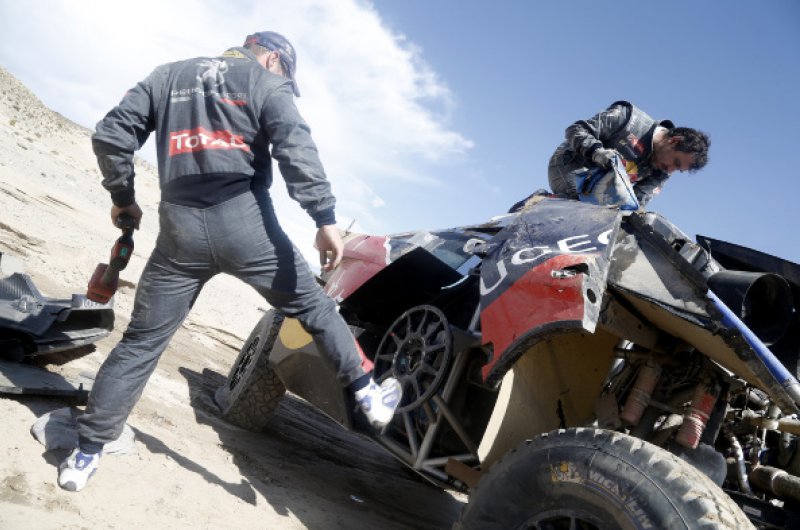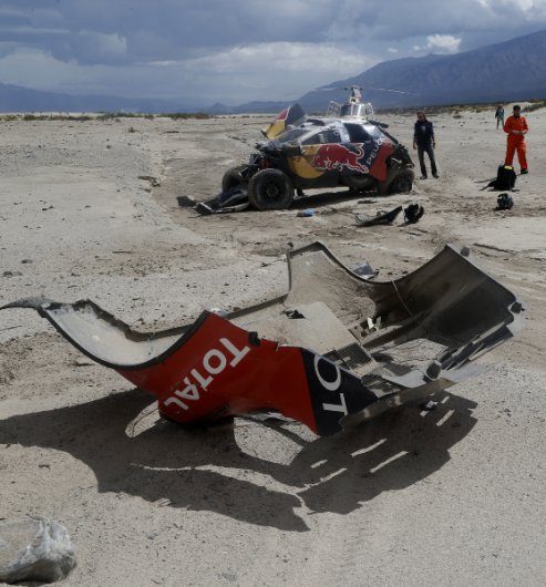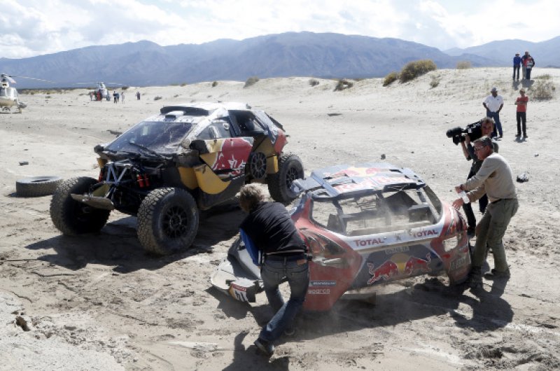 Drámaian alakult a Dakar Rali nyolcadik napja Sebastien Loeb és navigátora, Daniel Elena számára, akik odáig vezettek is a versenyben, ám az első igazi sivatagi szakaszon balesetet szenvedtek, amelyet ők ugyan épségben megúsztak, de autójuk felborult és alaposan összetört. A páros a szervízcsapat segítségével helyre tudta hozni a károkat és eljutott a célig, de győzelmi esélyeik odalettek.