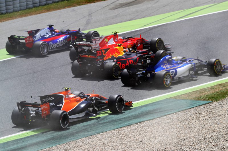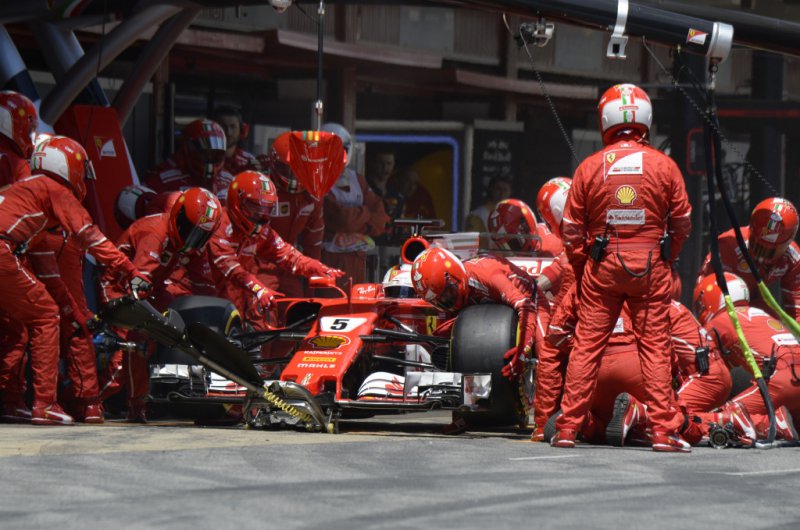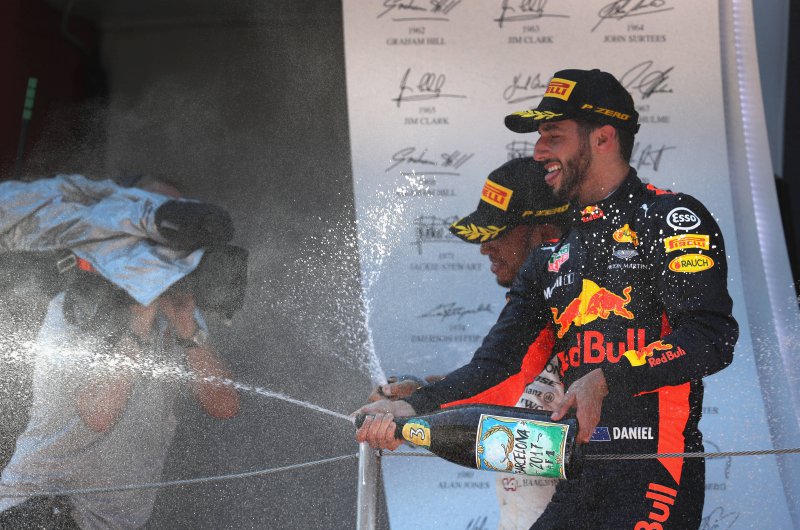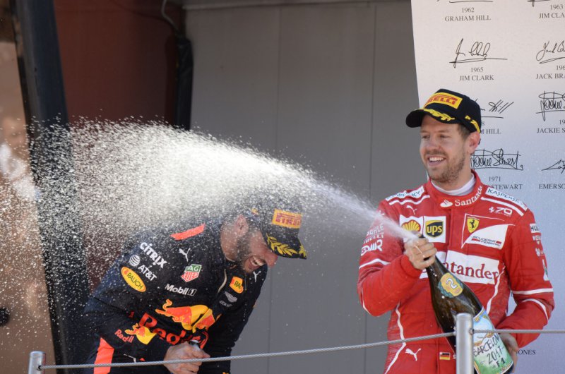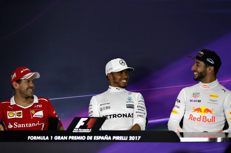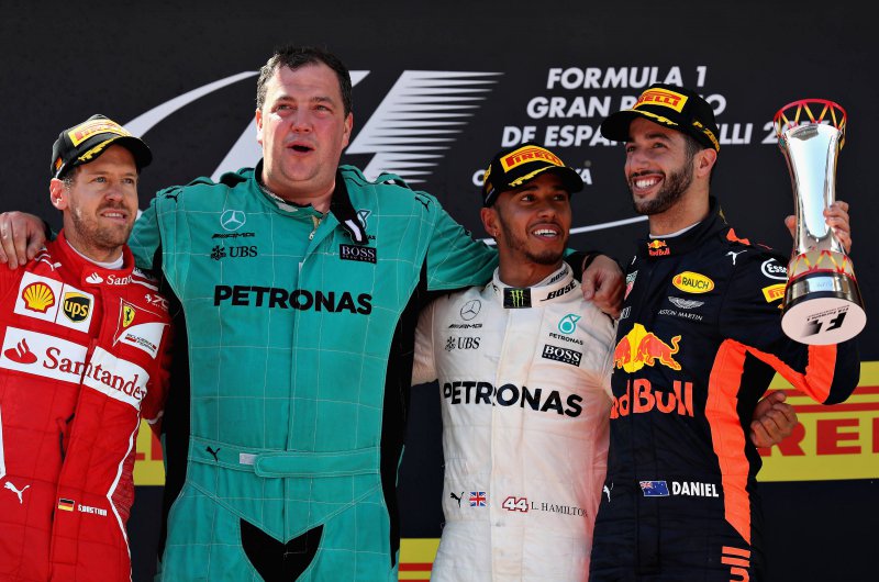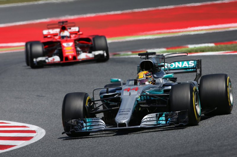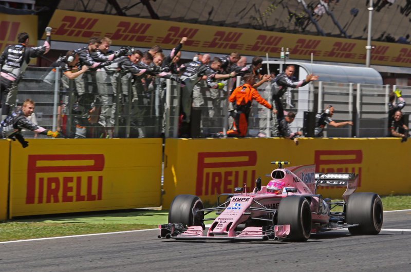 Hiába rajtolta le Hamiltont Sebastian Vettel, a stratégiai harcot ezúttal a Mercedes nyerte - kiesett viszont Bottas, Verstappen és Raikkönen is, míg a Force India újabb parádés versenyt ment. Fotó: Csapatok