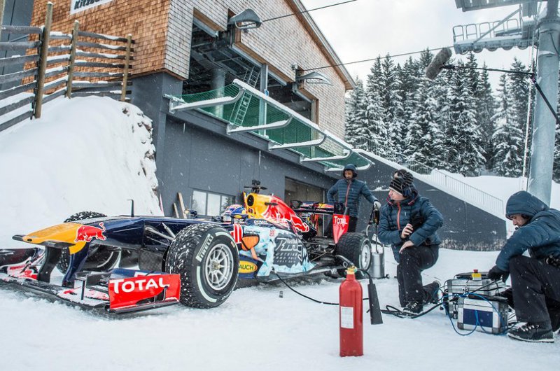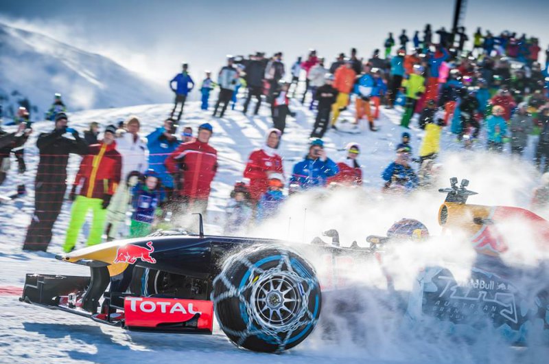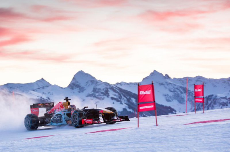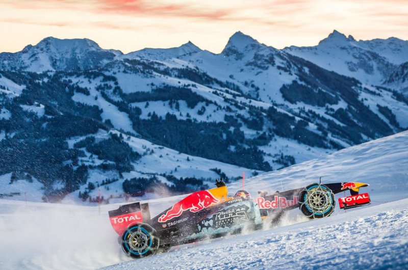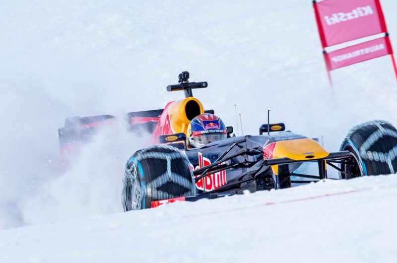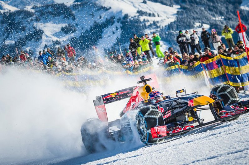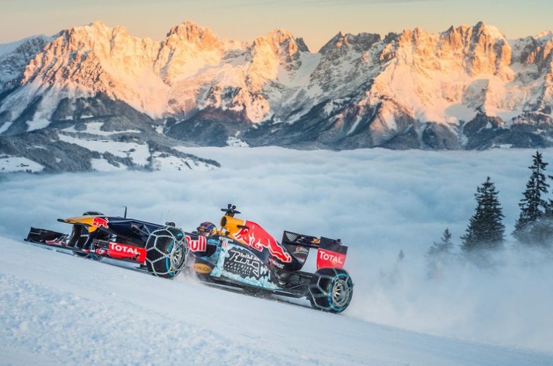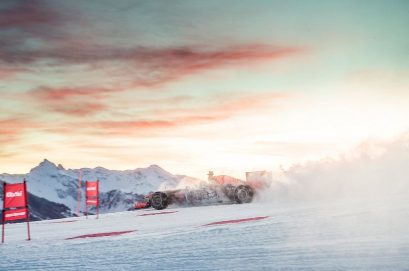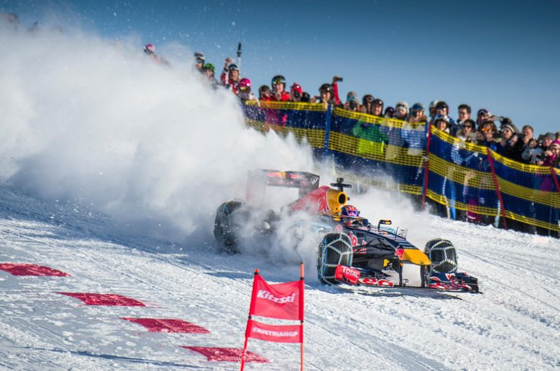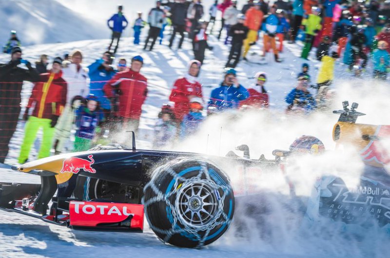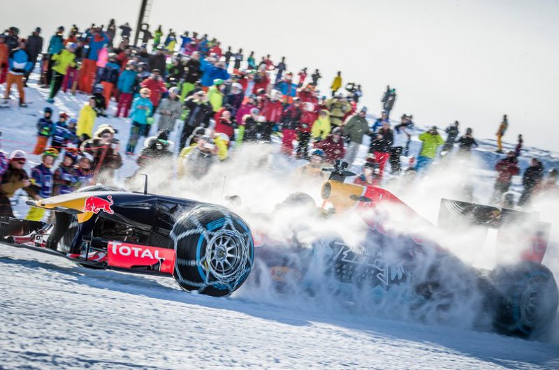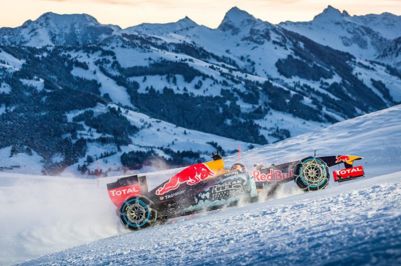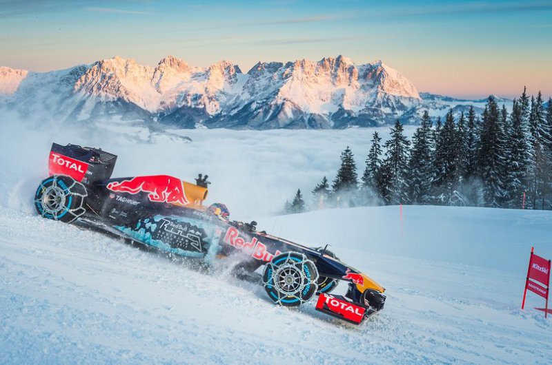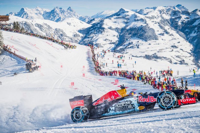 A Red Bull bizonyos értelemben történelmet írt, hiszen havas hegyoldalon korábban még egy F1-es csapat sem rendezett bemutatót. Max Verstappen a kitzbüheli sípálya lankáit vette célba speciálisan felszerelt autójával - ide nem voltak jók a slick gumik!