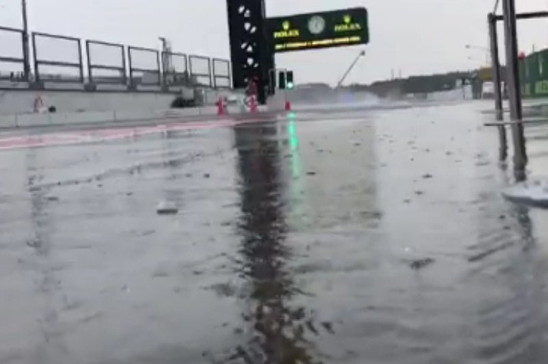 Bernd Maylander rossz hírt közölt a biztonsági autóból kiszállva: rosszabb a helyzet, mint tizenöt perce, rengeteg az állóvíz a pályán.