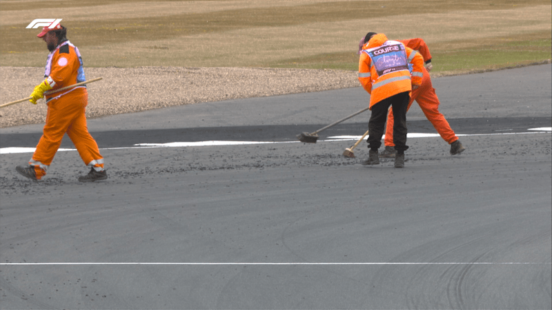 Késleltetik az FP3 rajtját, a marshallok elindultak az egyik kanyarhoz dolgozni.