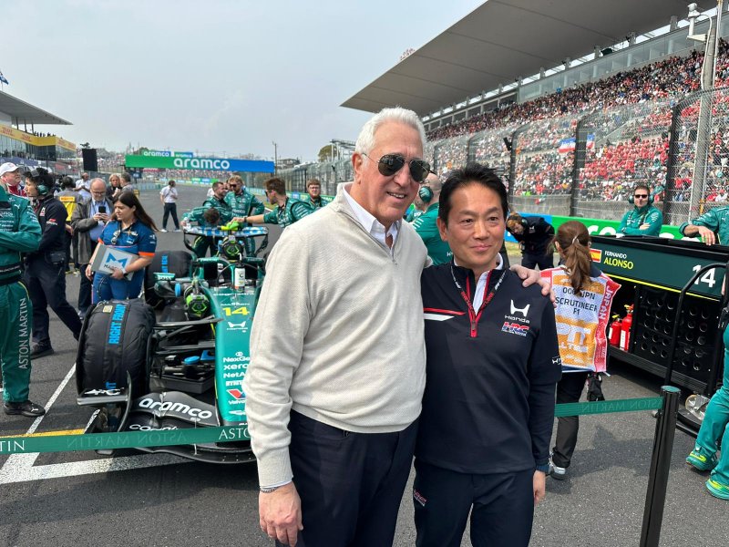 Az Aston Martinok a mezőny legvégén a Honda hazai versenyén - a borzalmasan küszködős idénykezdet ellenére azért összeállt egy közös fotóra Lawrence Stroll csapattulajdonos és Koji Watanabe HRC-főnök, íme, Mészáros Sándor kollégánk fotója egyenesen a helyszínről: