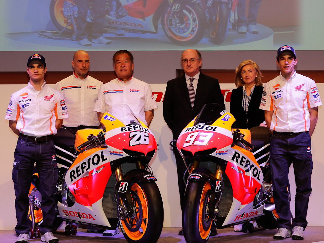 "A 2012-es szezon egy jó év volt a Honda szempontjából, azonban először sokat szenvedtünk amiatt, hogy az utolsó pillanatokban változtattak a minimum súlyhatáron. Ez főleg Daninak okozott nehézségeket, mivel számára a 4kg súlygyarapodás igen jelentősnek számít." - kezdte Nakamoto Pedrosával kapcsolatos gondolatait. "Az év második felében azonban Dani már erős volt és nyert hét futamot, köztük az esős malajziai viadalt. Úgy hisszük, hogy képes lesz az előző évi formáját hozni ezúttal is, ezen felül pedig óriási esélye van a világbajnoki címre." - mondta reménykedve a HRC alelnöke, majd őt követően Dani Pedrosa kitért a Repsol Honda új dizájnjára, amely valljuk be a korábbiakhoz képest jelentős változott a maga módján. "Már jó ideje a régi dizájnt használtuk, így azt gondoltuk, hogy itt az ideje a váltásnak. Az idei gép tehát ebből a szempontból is frissnek mondható, ami óriási lökést ad nekünk a versenyeken való részvételhez. Bízom benne, hogy a szurkolóknak is tetszik." - nyilatkozta a spanyol, majd így folytatta: "Igen türelmetlenül várom, hogy elkezdődjön az előszezon, mivel tavaly az évadzáró nagydíjat követő valenciai teszten nem tudtunk valami sokat menni az eső miatt. Már alig várom, hogy ott legyünk Malajziában, gyors köröket fussak a motorral, jól érezzem magam és megnézzük, hogy mely alkatrészek lehetnek hasznosak az első versenyen." - zárta lelkesen mondandóját Dani Pedrosa.