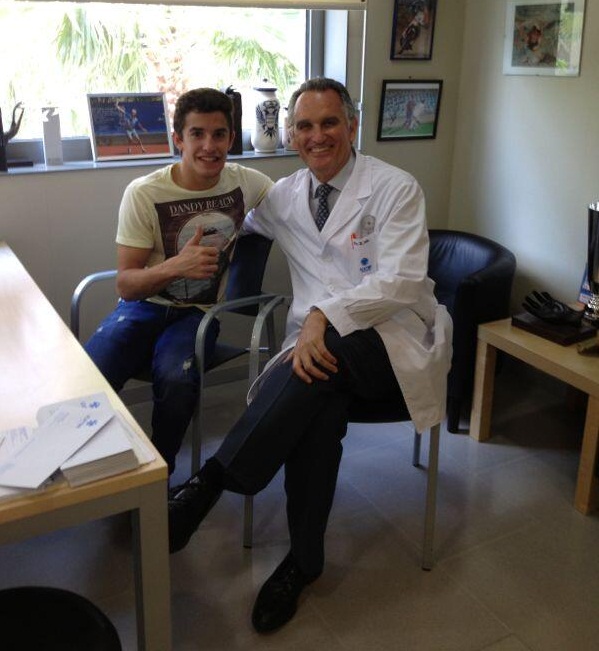 Marquez pénteki bukása hatalmas sebességnél történt még a mugellói pénteki második szabadedzésén, amely során épp csak el tudta kerülni, hogy a betonfalnak csapódjon. A Repsol Honda újoncánál ott a helyszínen áll- és vállsérüléseket diagnosztizáltak, de folytatni tudta a szereplést a hétvégén - igaz, végül nem szerzett pontot, miután a futam végén a második helyről ismét elesett, amely miatt a világbajnokság összetettjében is elvesztette a második helyét, s már csak a harmadik pozícióban áll, mindössze hat ponttal megelőzve az éppen az ő balesete okán dobogós helyezést elérő Cal Crutchlow-t. A verseny után aztán Barcelonába utazott, ahol további vizsgálatokat végeztek rajta hétfő délután az Universitario Quiron Dexeus kórházban: Xavier Mir doktor, a sebészeti osztály igazgatója részletesebben is megvizsgálta a sérült vállat.