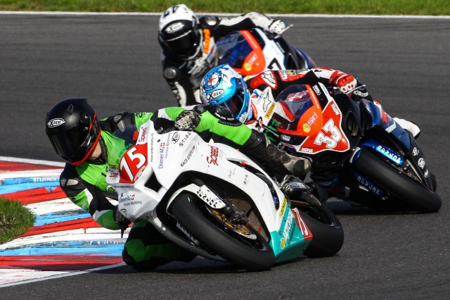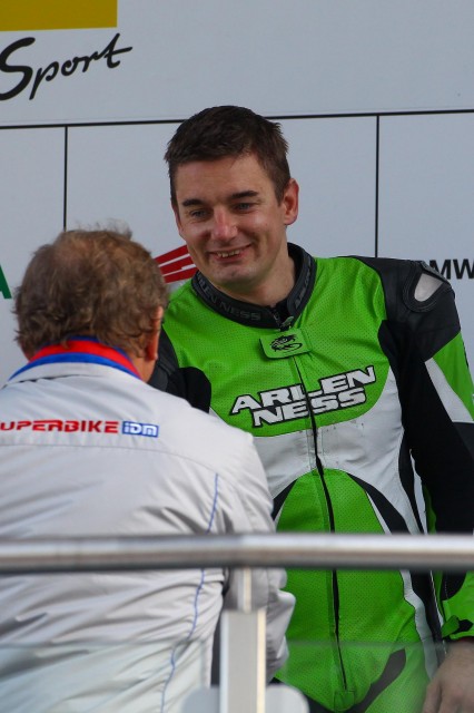 "összességében jó versenyhétvégét zártunk, habár a kívánságom nem teljesült, mert a futamok előtt túl sok időt nem volt alkalmunk száraz pályán motorozni. Pénteken végig esett, ezért a négy szabadedzésből csak egyre mentem ki. Ott a motor egyből nagyon jónak tűnt, és nem láttam értelmét tovább kockáztatni ilyen körülmények között, hiszen elég sok bukás volt a nedves aszfalton. Úgy voltam vele, hogy majd az időmérőt úgyis megnyomom, ha esni fog, ha nem, addig viszont értelmetlen lenne megkockáztatni egy bukást. A számításaim beváltak, mert az első időmérőt, amit még mindig esőben rendeztek, a Superstock kategóriában megnyertem, úgy, hogy majd másfél másodpercet sikerült adnom a 2.-nak, és a Superbike-motorok közül is csak hárman előztek meg. Utána viszont jött a feketeleves, mert a második időmérőre teljesen felszáradt a pálya, mi pedig hirtelen ott álltunk megfelelő beállítások és szárazpályás tapasztalat nélkül, szemben a többiekkel, akiknek év elején már volt két versenyük a Lausitzringen, így egyértelmű előnyben voltak velünk szemben a beállítások kapcsán. Ez volt a kisebbik gond, a nagyobbikat az jelentette, hogy a benzinpumpánk is rakoncátlankodott, így elég hektikussá vált a motor viselkedése, és nagyon rossz volt így vezetni. Vissza is estem az abszolút 18., kategória 6. helyre, és az első futam rajtját innen várhattam. Vasárnap reggel, a warm up-on aztán megint esett, így sanszunk sem volt javítani a szárazpályás beállításokon, az első futamra pedig természetesen megint csontra felszáradt a pálya. Jó, így is sikerült megszereznem a Superstock-ban a 3. helyet, de a tempóm közel sem volt olyan, mint szerettem volna. A második versenyre ezért állítottunk a motoron, és hátsó rugót is cseréltünk, aminek köszönhetően picit közelebb kerültünk az élmezőnyhöz, de még mindig nem elég közel. örülünk a két 3. helynek, de teljesen elégedettek nem lehetünk, mert tudjuk, hogy lehetett volna ez jobb is. Egy pici még hiányzik, és a 3. hely nem rossz ugyan, de úgy kéne 3.-nak lennünk, hogy harcban vagyunk a győzelemért is, mert úgy érzem, ez sincs elérhetetlen távolságban. A csapat már Hockenheimben is nagyon elégedett volt velem, és most is dicsértek. Azt tudni kell, hogy azért is mehettem idén az utolsó két futamon náluk, mert ez eredetileg egy egyversenyzős csapat volt. A bajnokság első hét versenyhétvégéjén egy fiatal ausztrál srác, Alex Phillis (2011-ben 4. lett a 125 köbcentis ausztrál bajnokságban, 2012 óta versenyez az IDM-ben) egyedül indult a színeikben, és mellé kerestek egy rutinos csapattársat, aki mellett fejlődhet. Úgy gondolom, hogy ilyen szempontból is jól sült el, hogy csatlakoztam hozzájuk, hiszen azóta nagyjából másfél másodperccel közelebb került a srác az élmezőnyhöz, ami nem csak az adatmegosztásnak köszönhető, de annak is, hogy egész egyszerűen van egy másik pilóta a csapatban, aki húzza őt, és még nagyobb tempóra, még nagyobb erőbedobásra sarkallja. Most is az első versenyen még nagyon le volt maradva tőlem, és csak 5. lett a Superstock-ban, a második verseny elején viszont kihasználta, hogy picit szenvedtem, és csak két körrel a vége előtt tudtam őt megelőzni. A végén 63 ezreddel szeltem át előtte a célvonalat, szóval kézzel tapintható volt a fejlődése. Ezért a csapat is örül, a gyerek is örül, és én is örülök. Bízom benne, hogy a közös folytatás is szóba kerül majd, de ez egyelőre még a jövő zenéje."