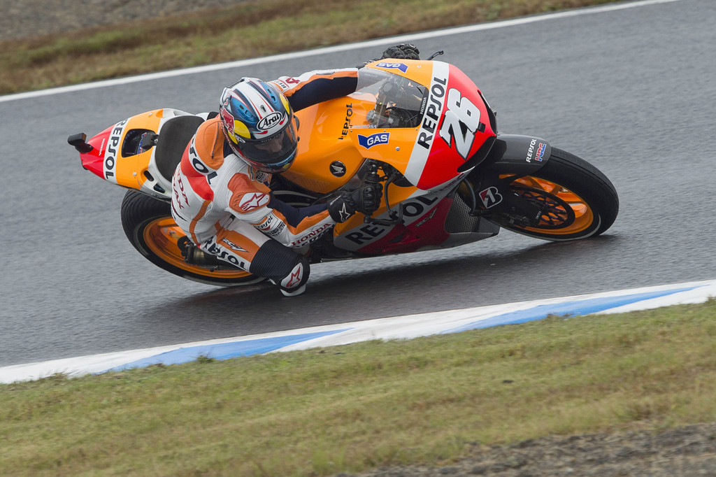 Magyar idő szerint vasárnap reggel hatkor vette kezdetét a Japán Nagydíj utolsó eseménye, a királykategória 24 körös futama. Az első helyről Jorge Lorenzo vághatott neki a viadalnak, akinek nyilvánvalóan az volt a célja, hogy megakadályozza a mellőle startoló, de a délelőtti szabadedzésen egyszer már bukó Marc Marquez bajnokká avatását: az újonc 18 egységgel vezeti a tabellát, így ha nyolc ponttal többet szerez a címvédőnél, már egy futammal a vége előtt ő a világbajnok. A harmadik kockába Nicky Hayden kvalifikálta magát a Ducatival, kihasználva a szombati esős körülményeket, míg a második sort a címre még szintén esélyes Dani Pedrosa nyitotta, megelőzve Valentino Rossit és Andrea Doviziosót. A hetedik rajthelyet Alvaro Bautista szerezte meg, majd jött a vasárnapot edzéselsőséggel nyitó Stefan Bradl, a top10-et pedig az ismét legjobb CRT-sként végző Aleix Espargaro, valamint a pramacos Yonny Hernandez zárta.