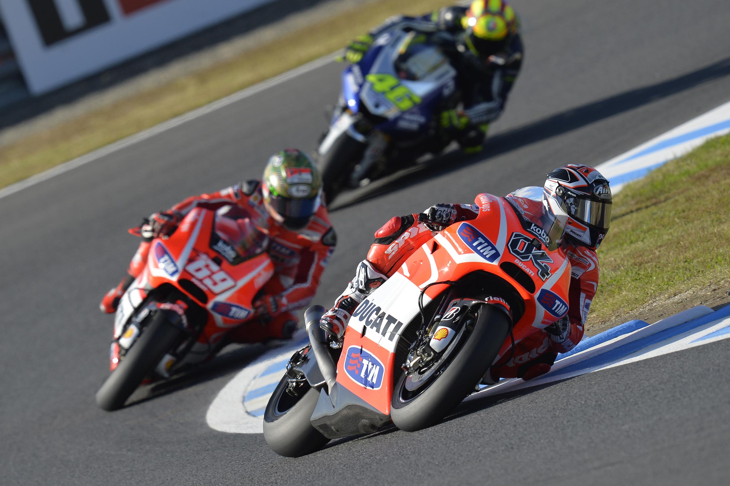 A pilóták a teljesítményét nem is lehet értékelni, mert a motor sajnos nincs a helyzet magaslatán. Az emberek most egy új technikai irányt várnak Dall"™Igna érkezésétől, aki annak idején az Aprilia sikereinek az alapjait is letette a Superbike világbajnokságon. Az utóbbi három év szörnyű volt nekik minden szempontból, és sok hibát követtek el, talán túlontúl is sokat. A gyorsasági-motoros világbajnokságnak szüksége van egy versenyképes Ducatira, és talán ez az utolsó buszjárat, amire mindenkinek fel kell szállnia.