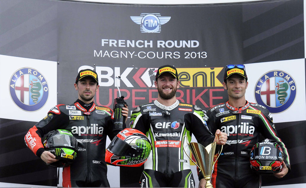 Egyikük Marco Melandri, aki még 2002-ből büszkélkedhet egy 250-es arannyal, s Tom Sykes legnagyobb kihívója lehet. A BMW kivonulása után az Apriliához igazol, egy másik korábbi MotoGP-menő, Sylvain Guintoli mellé. Bár Sykes Kawasakival lett világbajnok, a konstruktőri címet az Aprilia vitte, Eugene Laverty és Guintoli a tabella második-harmadik helyén végeztek.