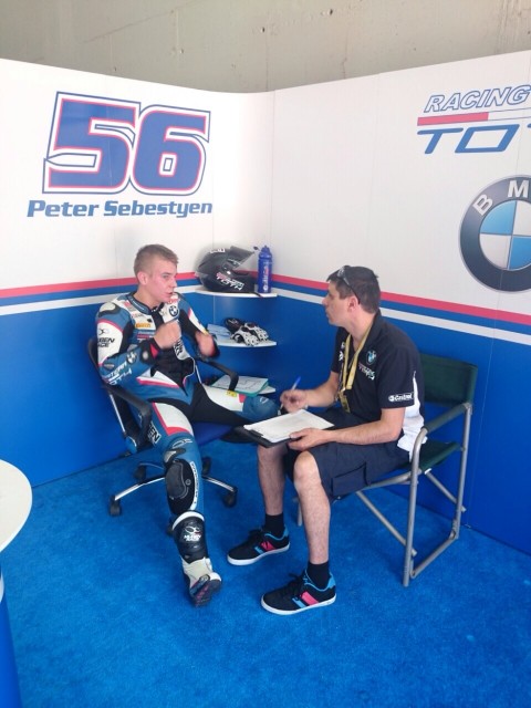 Az eddig nagyon kevés ezres tapasztalattal rendelkező Sebestyén Péter sikeresen túl van az írásbeli érettségi vizsgákon, testileg és lelkileg is felépült az imolai súlyos bukását követően. A 20 éves motoros már a múltkori futamokon változtatott eddigi vezetési stílusán, amelynek következtében a teljesítménye ugrásszerűen feljavult, és egészen a második futamon történt eséséig folyamatosan gyorsult. Ezt szeretné folytatni a Donington Parkban is.