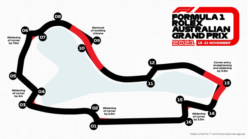 Zajlik az építkezés a melbourne-i Albert Parkban a november 18-21-én esedékes Ausztrál Nagydíjra: az eredmény egy egészen más ritmusú, sokkal gyorsabb pálya lesz. A számítások szerint a jelenlegi 1:21,0-s kvalifikációs köridő 1:15,8-ig csökkenhet, az átlagsebesség pedig 15 km/h-val nőhet, miközben a pálya csak 23 méterrel lesz rövidebb (5303 helyett 5280 méter).