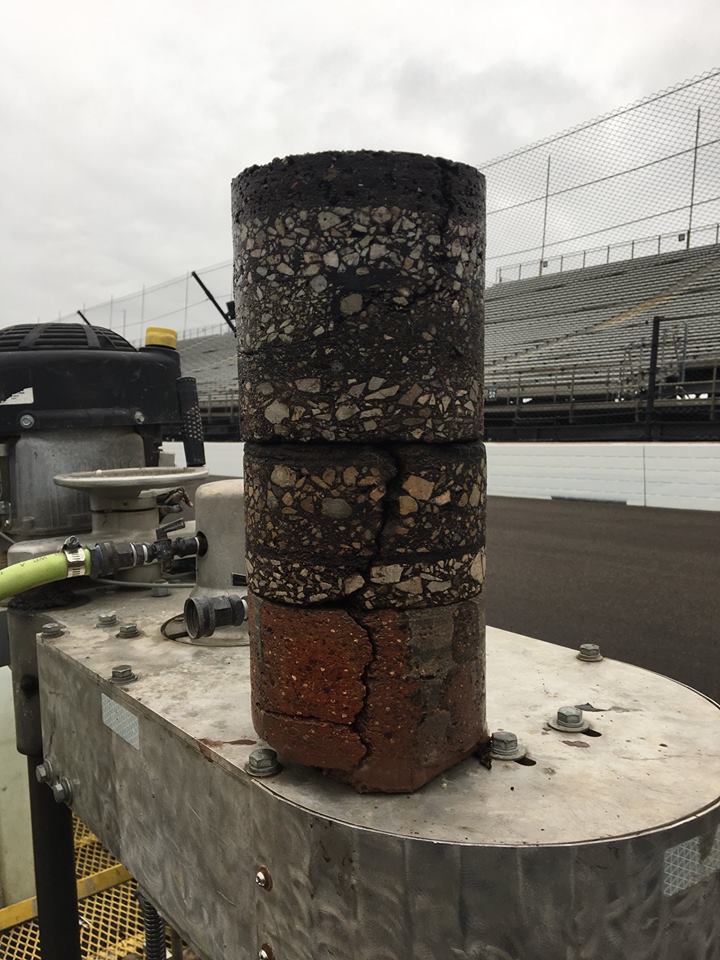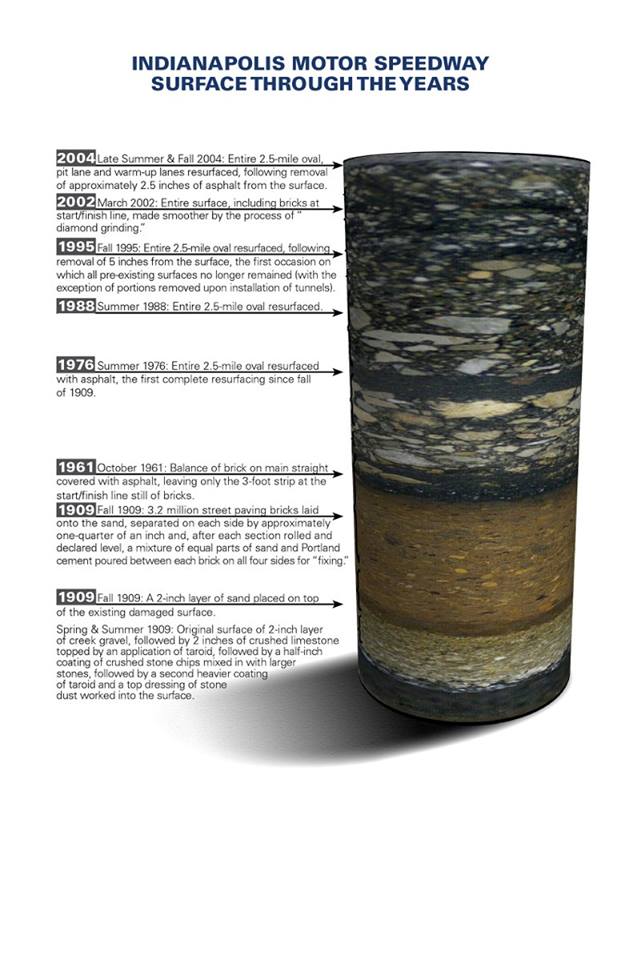Réteges földmintát vettek Indianapolisban, amely lenyűgöző látványt nyújt: a pálya épülése, átalakulása 1909-től napjainkig tükröződik a rétegekben.