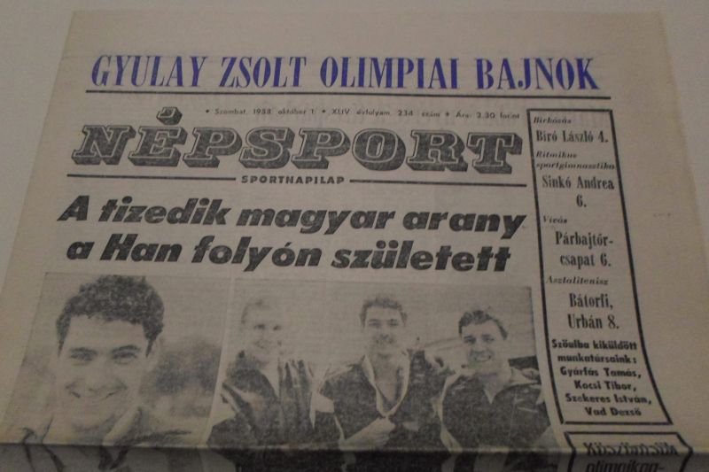 Az Újságmúzeum Facebook-oldal bányászta elő az alábbi, 1988-as Népsportot, amely nagy betűkkel hirdeti Gyulay Zsolt – a Hungaroring mai elnök-vezérigazgatója – olimpiai bajnoki címét. Gyulay Szöulban kajak egyesben és négyesben is aranyérmes lett.