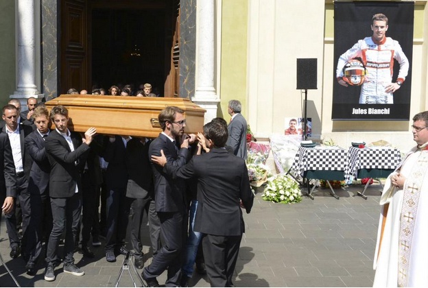 Vettel, Grosjean és Vergne elhunyt társuk koporsóját viszik