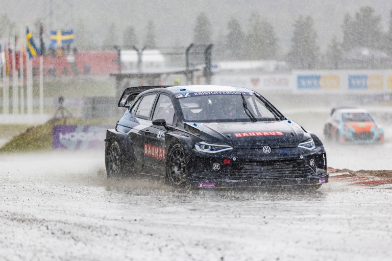 Johan Kristoffersson szerezte meg a győzelmet a Ralikrossz-világbajnokság második fordulóján, hazai pályán, Höljesben. Az elektromos VW Polóba visszaülő hétszeres világbajnok minden futamot megnyert a változó intenzitású esőben: a legnagyobb csapadék a döntőben érkezett meg, az eső szabályosan elárasztotta a pályát.
