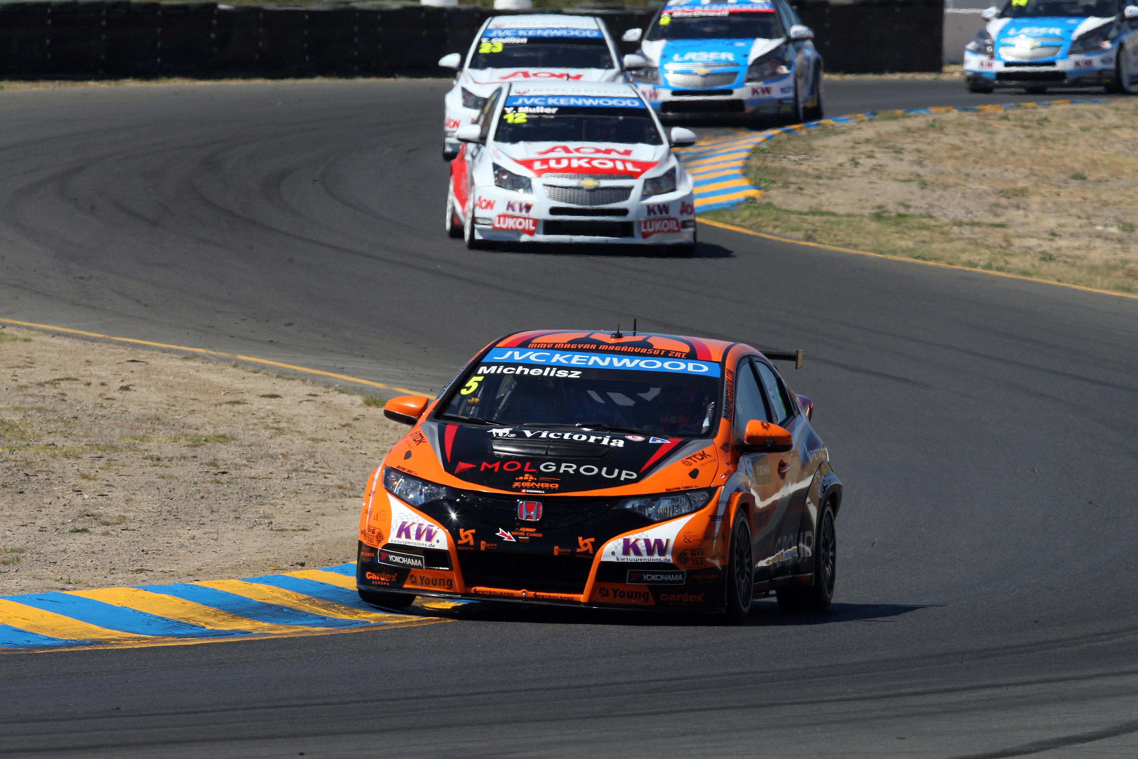 Ott aztán a negyedik helyről rajtolva egyértelműen a dobogó volt a cél. Hogy végül harmadik hely lett belőle, az javarészt amiatt történt, hogy az előttem haladó Mehdi Bennani nagyon jó tempót ment, nem tudtam volna erőből megelőzni. Az én tavalyi sonomai teljesítményemből is látszik, hogy ez a pálya nagyon fekszik a BMW-nek: a kanyargós aszfaltcsík és a magas külső hőmérséklet mind kedvez a bajor márkának. Onnantól, hogy éreztem, Bennanin nem tudok fogást találni, egyetlen cél lebegett a szemem előtt: megvédeni a harmadik helyet a vészesen közeledő Yvan Mullertől. Irtózatosan nehéz feladat volt. Gyorsabb volt nálam, valamit ki kellett találni. Az volt a taktikám, hogy megpróbálom annyira belassítani Mullert, hogy a mögötte lévő Monteiro is felzárkózzon ránk. Ãgy a francia figyelme megoszlott, immár nemcsak az én előzésemre kellett koncentrálnia, hanem a védekezésre is Monteiróval szemben. Büszke voltam, hogy sikerült megvalósítani a stratégiát, kihoztuk a maximumot a hétvégéből!